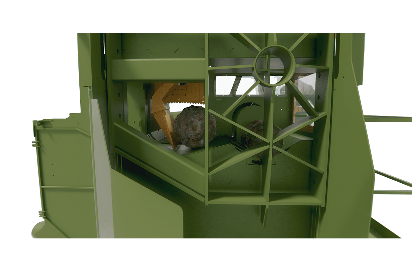 La nouvelle version du TLC est également équipée d’une auge élargie à 60 cm pour alimenter la station de coupe. L’auge élargie permet d’optimiser le chargement de la machine lors du traitement de gros billons, ou de gros paquets de petits billons. Cette solution est de plus en plus appréciée par les producteurs de bois de chauffage, qui sont confrontés à des changements fréquents du diamètre des matériaux entrants.